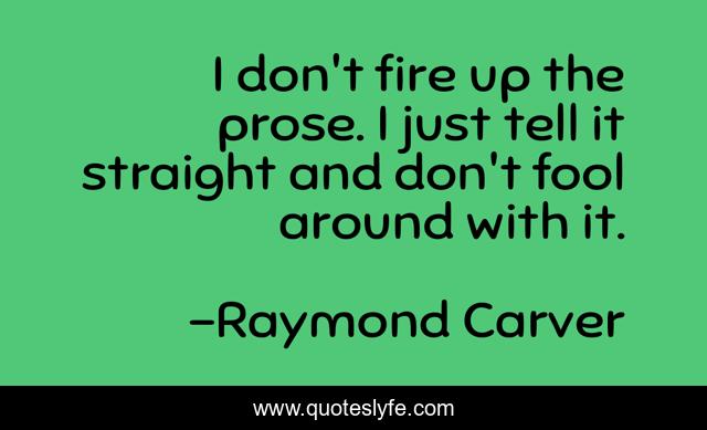This page presents the quote "I don't fire up the prose. I just tell it straight and don't fool around with it.". Author of this quote is Raymond Carver. This quote is about raymond-carver, quote, writing-process,.