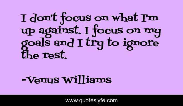 This page presents the quote "I don't focus on what I'm up against. I focus on my goals and I try to ignore the rest.". Author of this quote is Venus Williams. This quote is about focus, goals,.