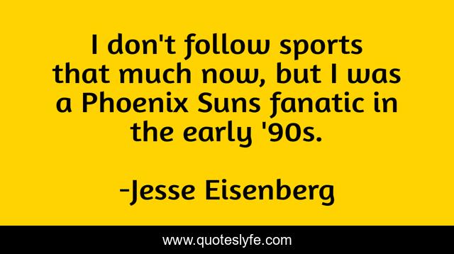 This page presents the quote "I don't follow sports that much now, but I was a Phoenix Suns fanatic in the early '90s.". Author of this quote is Jesse Eisenberg. This quote is about early, follow, phoenix,.
