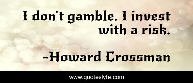 This page presents the quote "I don't gamble. I invest with a risk.". Author of this quote is Howard Crossman. This quote is about vices, foibles,.