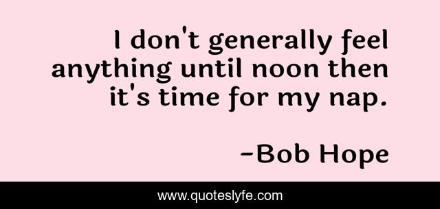 This page presents the quote "I don't generally feel anything until noon then it's time for my nap.". Author of this quote is Bob Hope. This quote is about age, birthdays,.