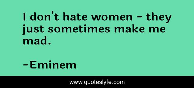 This page presents the quote "I don't hate women - they just sometimes make me mad.". Author of this quote is Eminem. This quote is about me, hate, mad,.