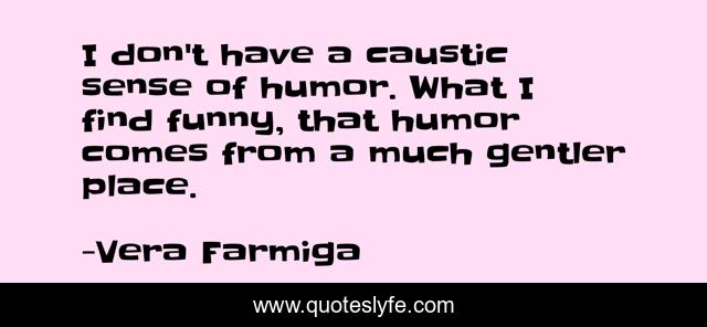 This page presents the quote "I don't have a caustic sense of humor. What I find funny, that humor comes from a much gentler place.". Author of this quote is Vera Farmiga. This quote is about funny, sense of humor, comedy, place,.