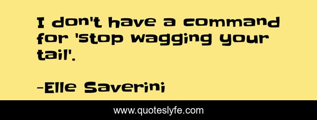 This page presents the quote "I don't have a command for 'stop wagging your tail'.". Author of this quote is Elle Saverini. This quote is about humor, adventure, crime,.