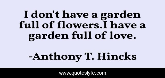 This page presents the quote "I don't have a garden full of flowers.I have a garden full of love.". Author of this quote is Anthony T. Hincks. This quote is about beautiful, life, full, love, garden, philosophy, blooms, home, flowers,.