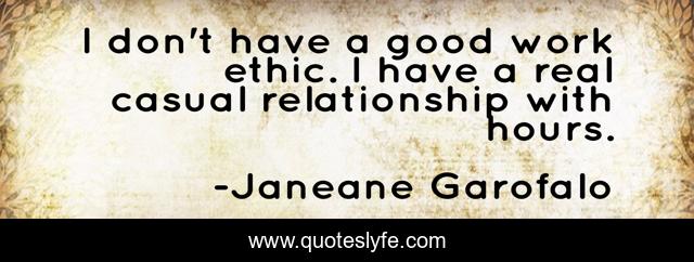 This page presents the quote "I don't have a good work ethic. I have a real casual relationship with hours.". Author of this quote is Janeane Garofalo. This quote is about good, relationship,.
