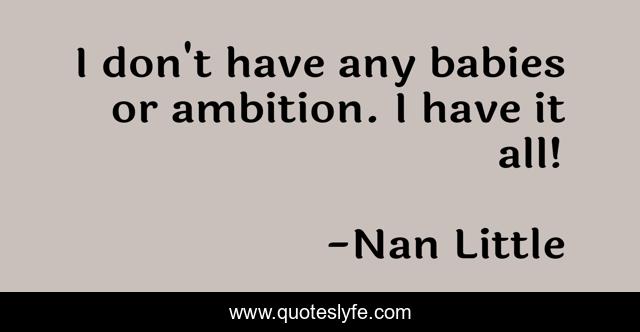 This page presents the quote "I don't have any babies or ambition. I have it all!". Author of this quote is Nan Little. This quote is about career, parenthood, humor, work-life-balance,.