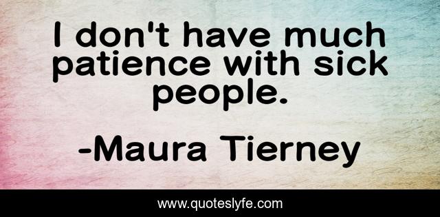 This page presents the quote "I don't have much patience with sick people.". Author of this quote is Maura Tierney. This quote is about much, sick, people,.