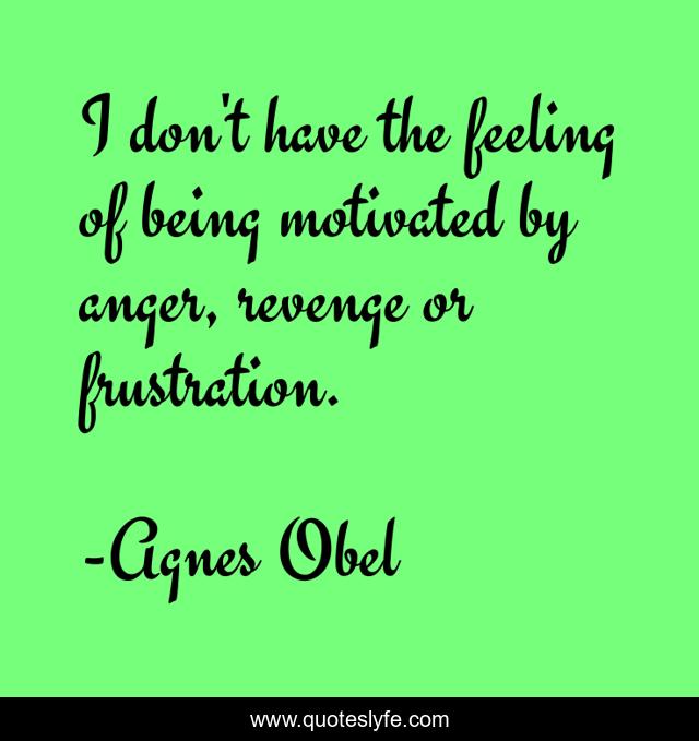 This page presents the quote "I don't have the feeling of being motivated by anger, revenge or frustration.". Author of this quote is Agnes Obel. This quote is about revenge, frustration,.