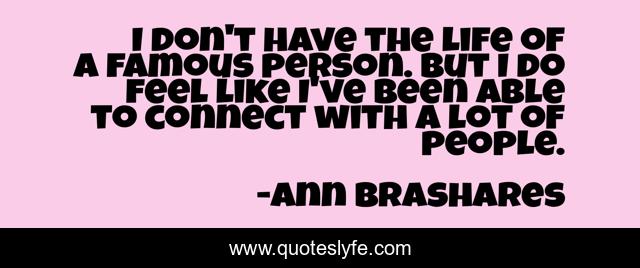 This page presents the quote "I don't have the life of a famous person. But I do feel like I've been able to connect with a lot of people.". Author of this quote is Ann Brashares. This quote is about life, connect, people,.