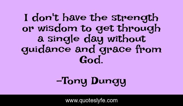 This page presents the quote "I don't have the strength or wisdom to get through a single day without guidance and grace from God.". Author of this quote is Tony Dungy. This quote is about god, day, wisdom,.