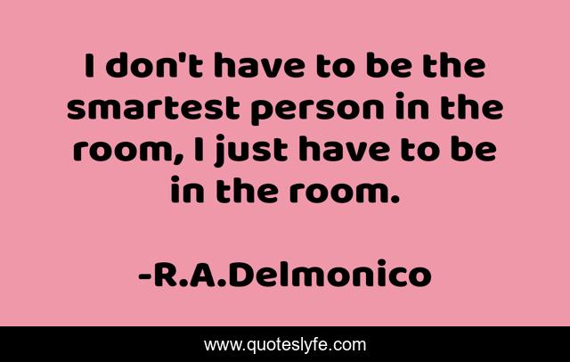 This page presents the quote "I don't have to be the smartest person in the room, I just have to be in the room.". Author of this quote is R.A.Delmonico. .