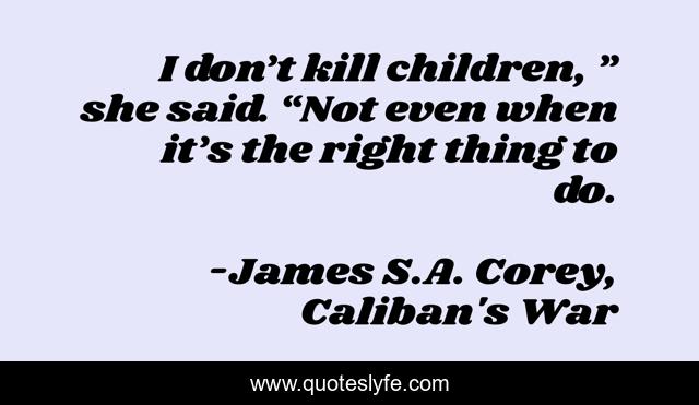 "James S.A. Corey, Caliban's War Quotes." Quoteslyfe.com, 2025. Sat. 06 Dec. 2025. <https://www.quoteslyfe.com/quote/I-don-t-kill-children-she-said-99675>.