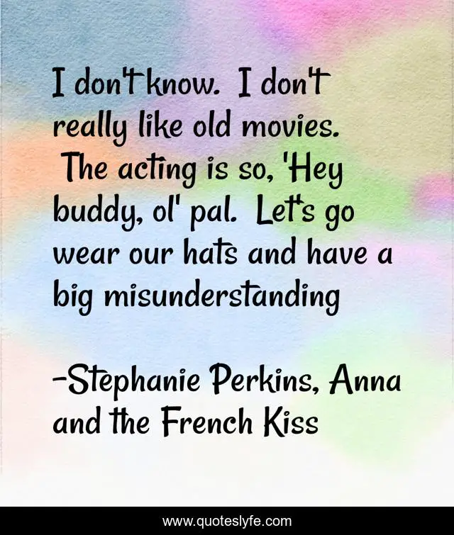 This page presents the quote "I don't know. I don't really like old movies. The acting is so, 'Hey buddy, ol' pal. Let's go wear our hats and have a big misunderstanding". Author of this quote is Stephanie Perkins, Anna and the French Kiss. This quote is about funny-but-true, old, film,.
