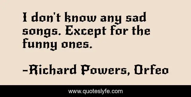 This page presents the quote "I don't know any sad songs. Except for the funny ones.". Author of this quote is Richard Powers, Orfeo. This quote is about sadness, music, humour,.