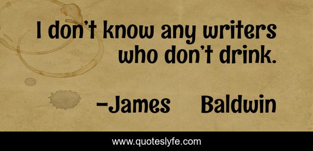 This page presents the quote "I don’t know any writers who don’t drink.". Author of this quote is James Baldwin. This quote is about literary, quotes, drinking, writers, writing,.