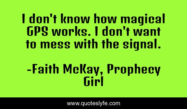 "Faith McKay, Prophecy Girl Quotes." Quoteslyfe.com, 2025. Fri. 05 Dec. 2025. <https://www.quoteslyfe.com/quote/I-don-t-know-how-magical-GPS-133794>.