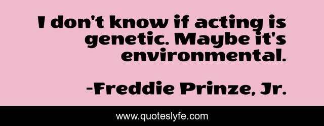 This page presents the quote "I don't know if acting is genetic. Maybe it's environmental.". Author of this quote is Freddie Prinze, Jr.. This quote is about maybe, acting,.