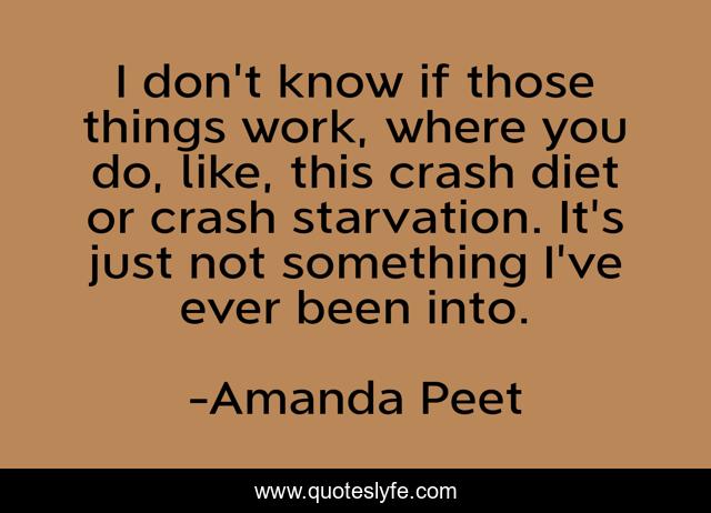 This page presents the quote "I don't know if those things work, where you do, like, this crash diet or crash starvation. It's just not something I've ever been into.". Author of this quote is Amanda Peet. .
