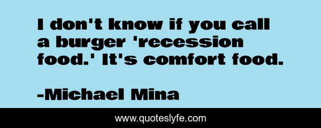 This page presents the quote "I don't know if you call a burger 'recession food.' It's comfort food.". Author of this quote is Michael Mina. .