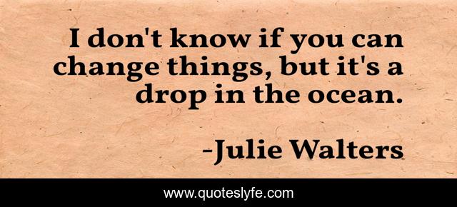 This page presents the quote "I don't know if you can change things, but it's a drop in the ocean.". Author of this quote is Julie Walters. .