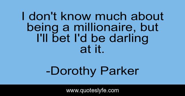This page presents the quote "I don't know much about being a millionaire, but I'll bet I'd be darling at it.". Author of this quote is Dorothy Parker. .