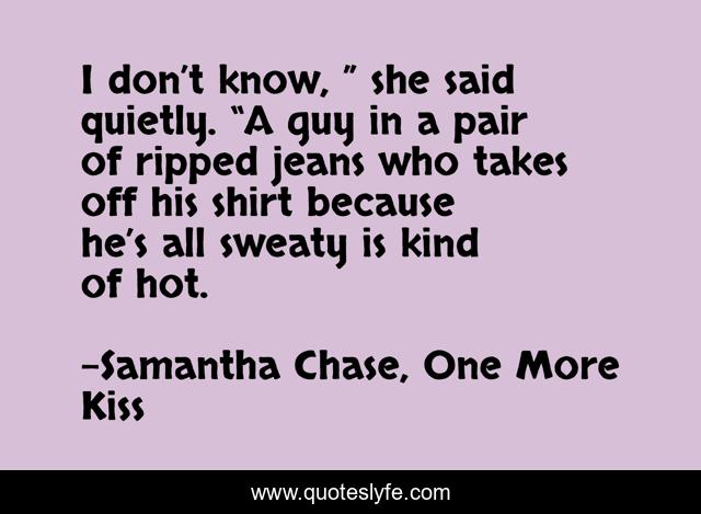 This page presents the quote "I don’t know, ” she said quietly. “A guy in a pair of ripped jeans who takes off his shirt because he’s all sweaty is kind of hot.". Author of this quote is Samantha Chase, One More Kiss. This quote is about food-blogger-romance, rock-star-romance, contemporary-romance,.