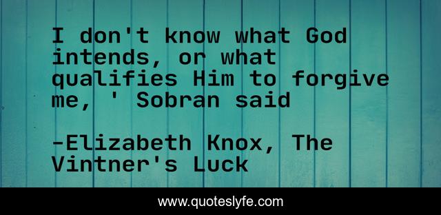 This page presents the quote "I don't know what God intends, or what qualifies Him to forgive me, ' Sobran said". Author of this quote is Elizabeth Knox, The Vintner's Luck. This quote is about intend, angel, god, forgive, qualify, church,.