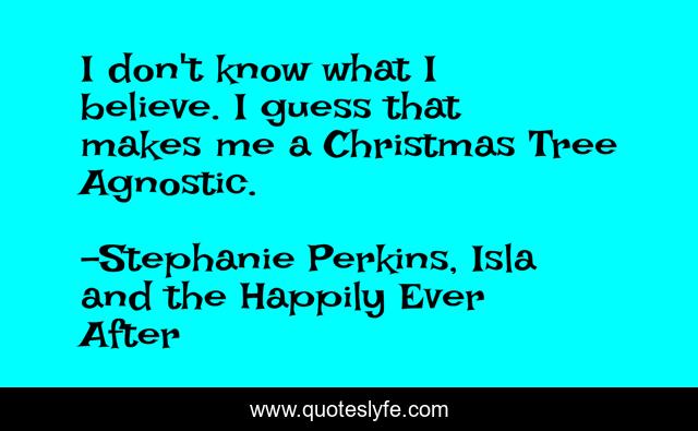 This page presents the quote "I don't know what I believe. I guess that makes me a Christmas Tree Agnostic.". Author of this quote is Stephanie Perkins, Isla and the Happily Ever After. This quote is about isla-martin, teen, believe, belief, religion, ya, agnostic, christmas, spirituality,.