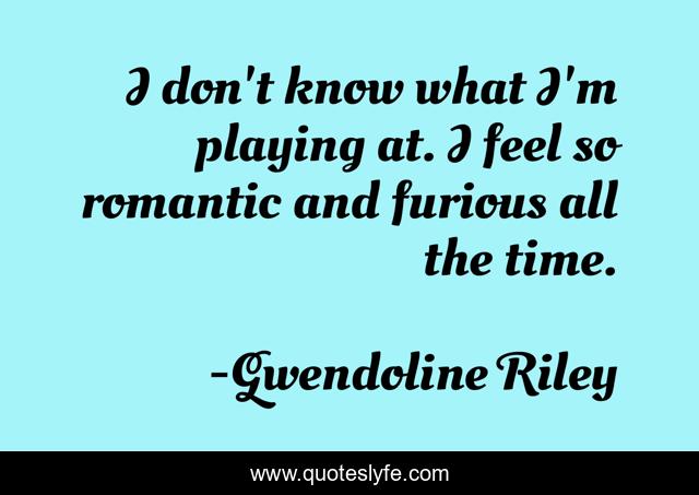 This page presents the quote "I don't know what I'm playing at. I feel so romantic and furious all the time.". Author of this quote is Gwendoline Riley. This quote is about furious, romance, relationship,.