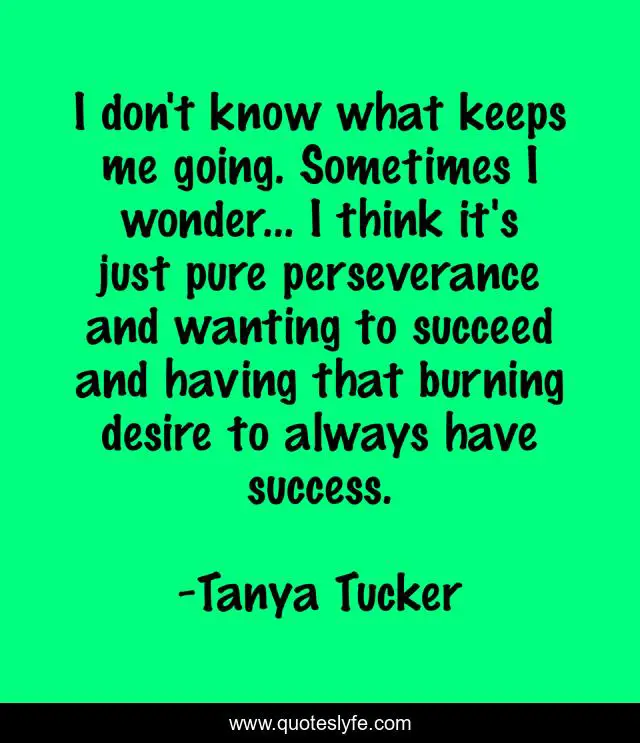 This page presents the quote "I don't know what keeps me going. Sometimes I wonder... I think it's just pure perseverance and wanting to succeed and having that burning desire to always have success.". Author of this quote is Tanya Tucker. This quote is about me, perseverance,.