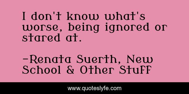 This page presents the quote "I don't know what's worse, being ignored or stared at.". Author of this quote is Renata Suerth, New School & Other Stuff. This quote is about social-situations, school, tween-chapter-book, juvenile-fiction, family-humor,.