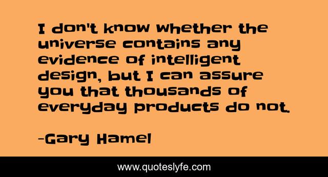 This page presents the quote "I don't know whether the universe contains any evidence of intelligent design, but I can assure you that thousands of everyday products do not.". Author of this quote is Gary Hamel. This quote is about universe, intelligent,.