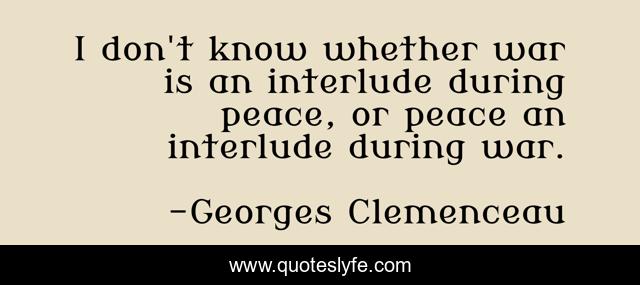 This page presents the quote "I don't know whether war is an interlude during peace, or peace an interlude during war.". Author of this quote is Georges Clemenceau. This quote is about whether, war,.