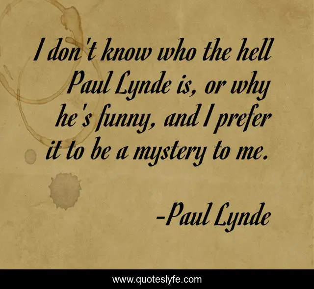 This page presents the quote "I don't know who the hell Paul Lynde is, or why he's funny, and I prefer it to be a mystery to me.". Author of this quote is Paul Lynde. This quote is about me, mystery,.