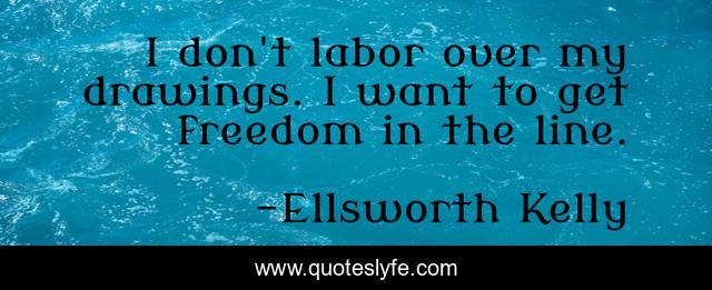 This page presents the quote "I don't labor over my drawings. I want to get freedom in the line.". Author of this quote is Ellsworth Kelly. This quote is about line, labor,.
