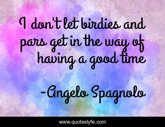 This page presents the quote "I don't let birdies and pars get in the way of having a good time". Author of this quote is Angelo Spagnolo. This quote is about golf, humor, sports,.