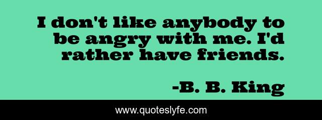 This page presents the quote "I don't like anybody to be angry with me. I'd rather have friends.". Author of this quote is B. B. King. This quote is about me, angry, friends,.