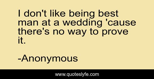 This page presents the quote "I don't like being best man at a wedding 'cause there's no way to prove it.". Author of this quote is Anonymous. This quote is about love, marriage, affection,.