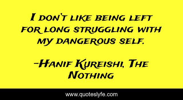 This page presents the quote "I don’t like being left for long struggling with my dangerous self.". Author of this quote is Hanif Kureishi, The Nothing. .