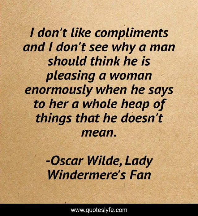 "Oscar Wilde, Lady Windermere's Fan Quotes." Quoteslyfe.com, 2025. Fri. 05 Dec. 2025. <https://www.quoteslyfe.com/quote/I-don-t-like-compliments-and-I-113206>.