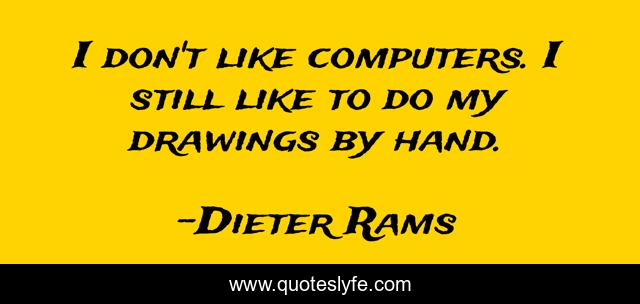 This page presents the quote "I don't like computers. I still like to do my drawings by hand.". Author of this quote is Dieter Rams. This quote is about still, like, hand,.