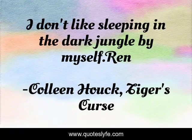 This page presents the quote "I don't like sleeping in the dark jungle by myself.Ren". Author of this quote is Colleen Houck, Tiger's Curse. This quote is about tiger, dark-jungle, comedy, funny,.