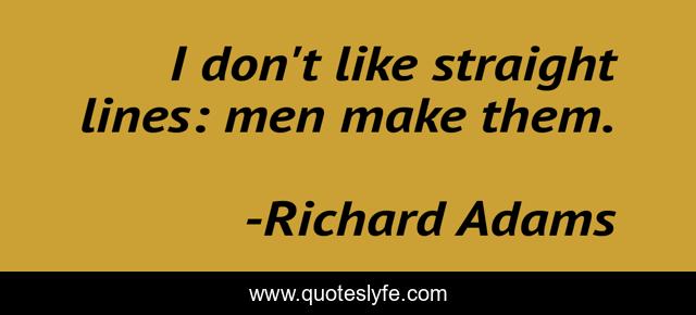 This page presents the quote "I don't like straight lines: men make them.". Author of this quote is Richard Adams. This quote is about progress, mankind, nature,.