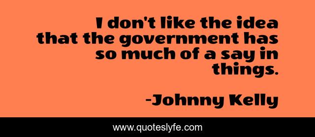 This page presents the quote "I don't like the idea that the government has so much of a say in things.". Author of this quote is Johnny Kelly. This quote is about idea, like,.