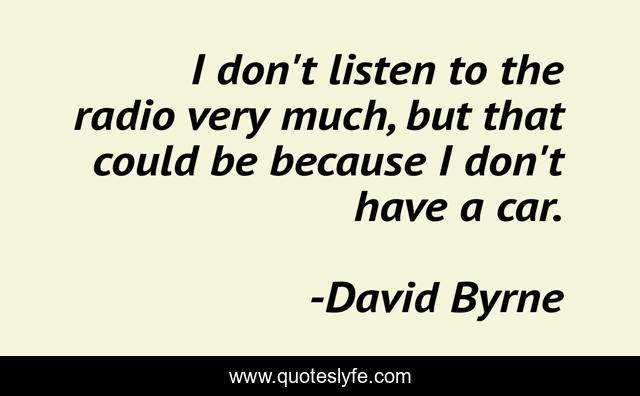 This page presents the quote "I don't listen to the radio very much, but that could be because I don't have a car.". Author of this quote is David Byrne. This quote is about because, radio, listen,.