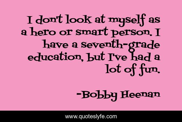 This page presents the quote "I don't look at myself as a hero or smart person. I have a seventh-grade education, but I've had a lot of fun.". Author of this quote is Bobby Heenan. This quote is about myself, hero, smart,.