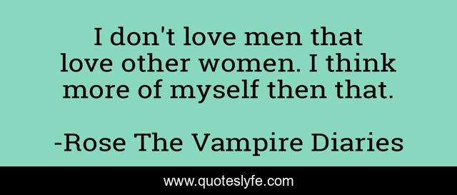 This page presents the quote "I don't love men that love other women. I think more of myself then that.". Author of this quote is Rose The Vampire Diaries. This quote is about rose, men, the-vampire-diaries, women,.