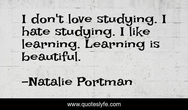 This page presents the quote "I don't love studying. I hate studying. I like learning. Learning is beautiful.". Author of this quote is Natalie Portman. This quote is about beautiful, hate, learning,.