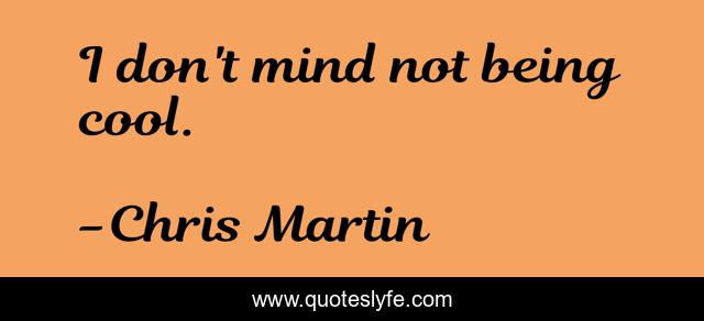 This page presents the quote "I don't mind not being cool.". Author of this quote is Chris Martin. This quote is about being, mind,.